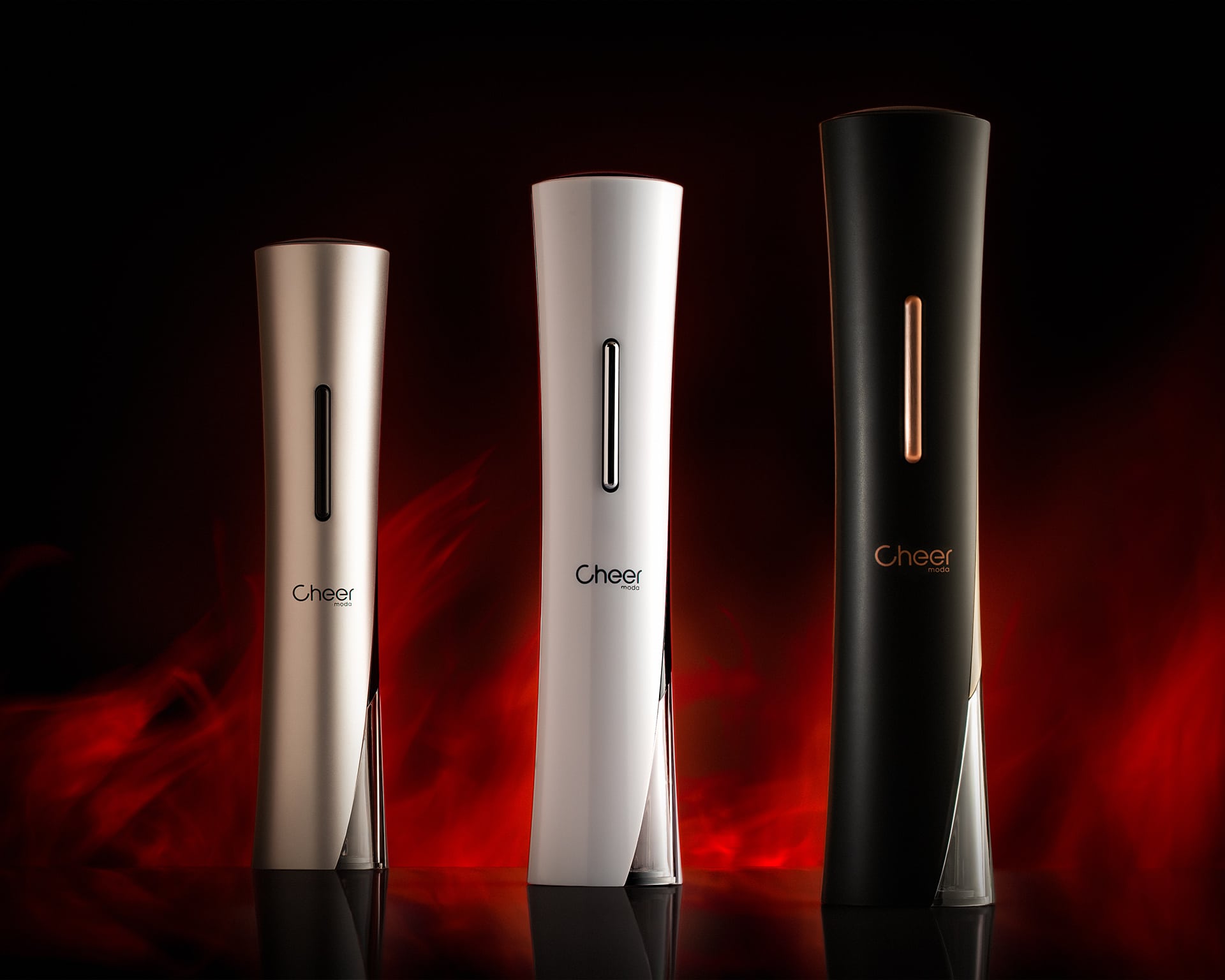 CHEER MODA, filiale du grand fabricant d’équipement domestique KLT, a sollicité la créativité de Frank ROUSSELIN pour imaginer sa nouvelle gamme de tire-bouchons électriques, principalement destinée au marché asiatique.